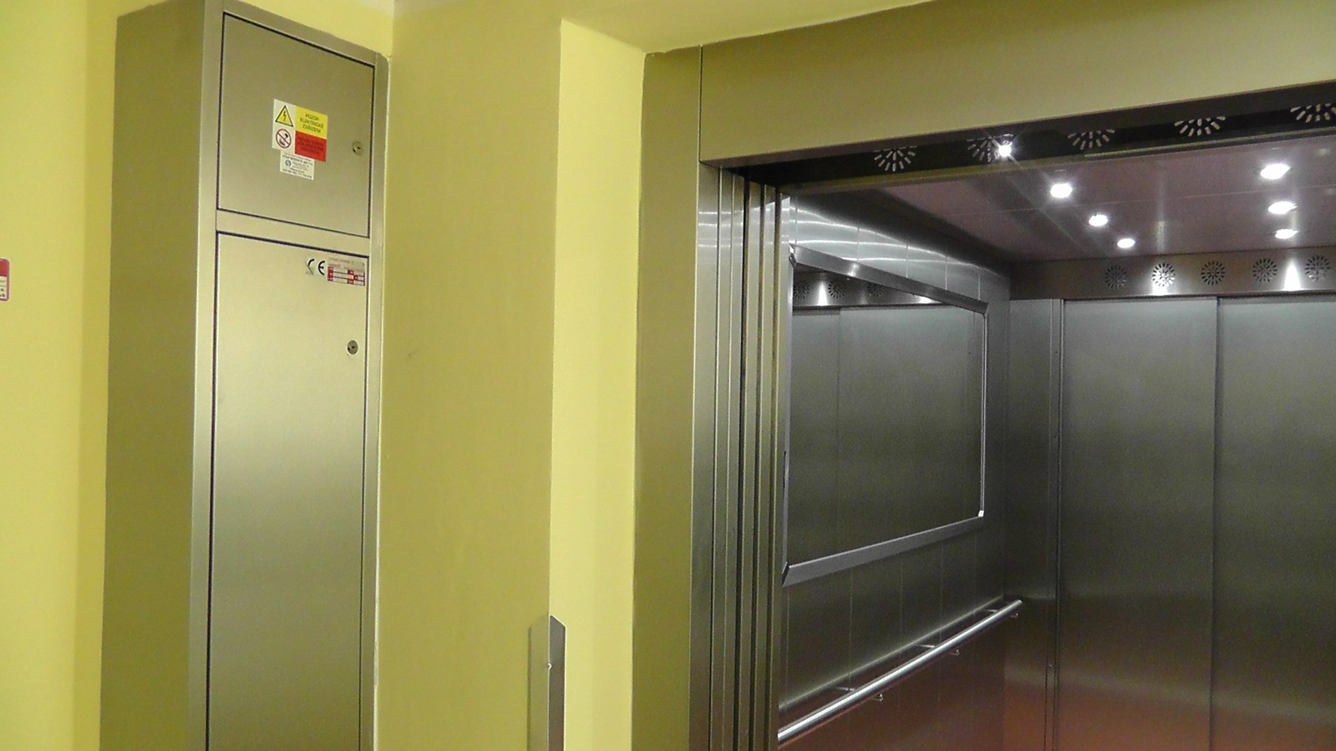 Proto jsme navrhli bezstrovnový bezpřevodový výtah. Klient tak dosáhl obslužnosti nejvyššího patra a odstranění veškerých rizik na starém výtahu. Nový výtah má kabinové a šachetní dveře automatické a provedení celého výtahu je nerez brus.